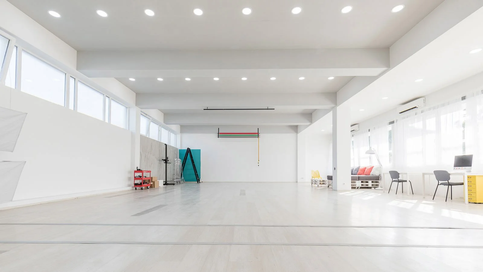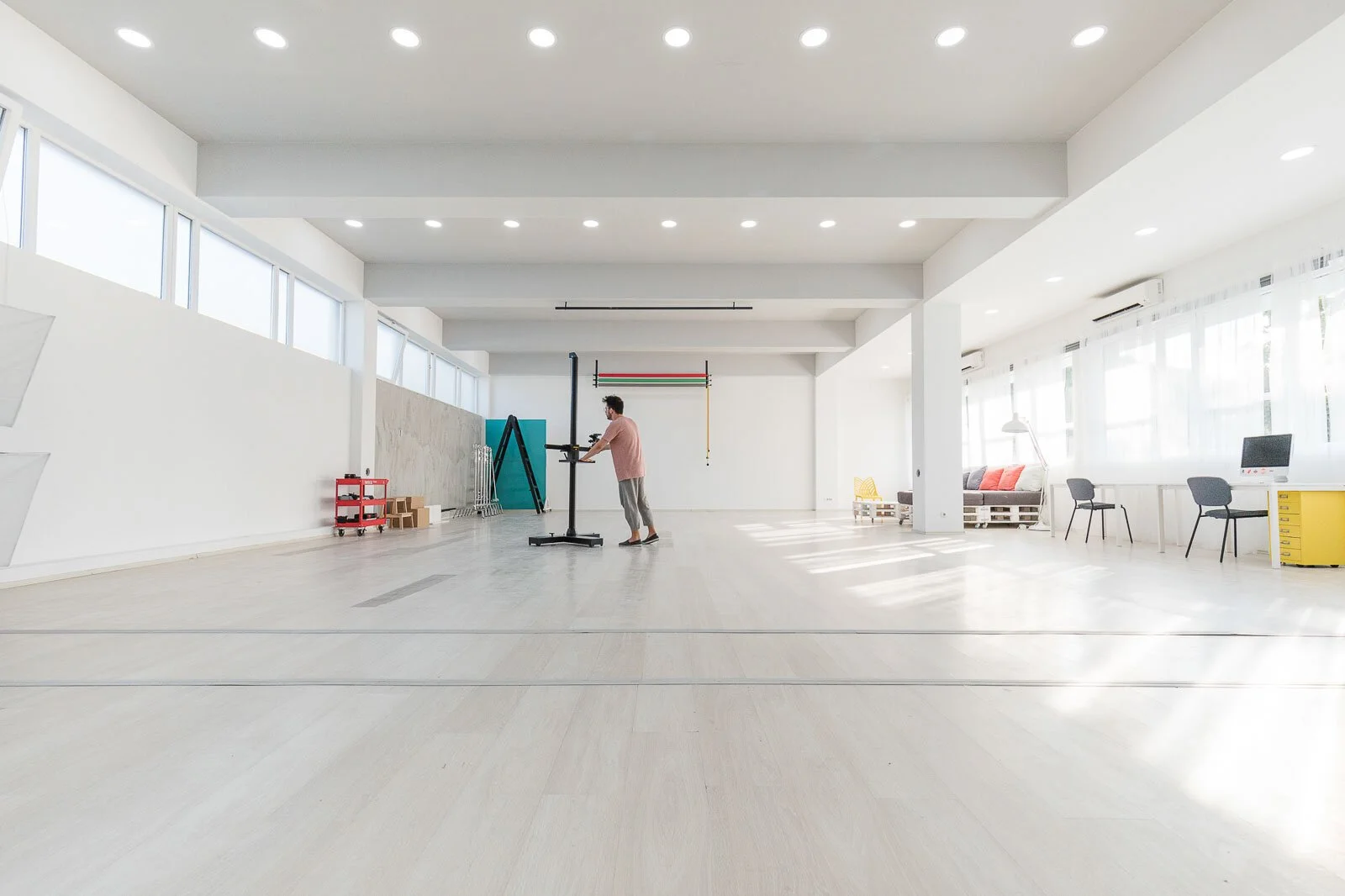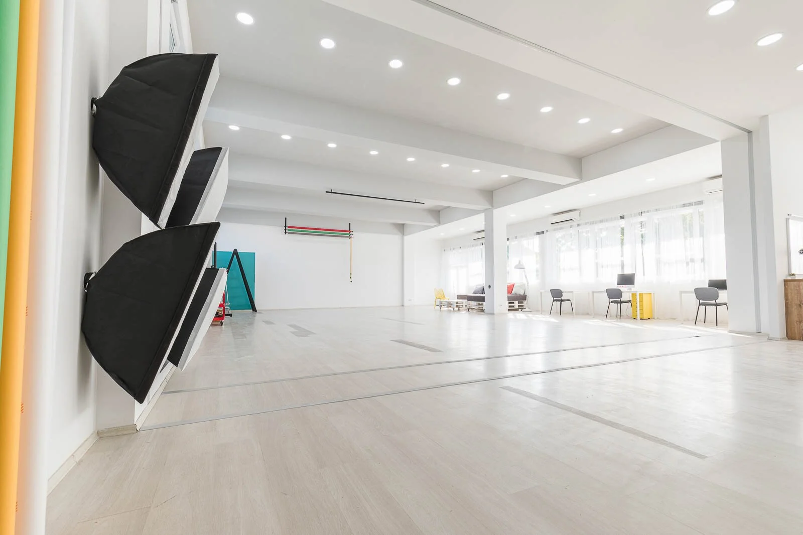 Studio od 200m2 snimajućeg prostora. Visina plafona je 4m što omogućava postavljanje rasvete u prirodne uglove za imitaciju Sunca. Dve strane studija su celom dužinom u prozorima koji se mogu difuzovati ili potpuno zamračiti. Garderoba i šminka su odvojeni za neometano funkcionisanje tokom snimanja. Kuhinja omogućava spremanje hrane, a kupatilo sa tuš kabinom čišćenje proizvoda i rekvizita.